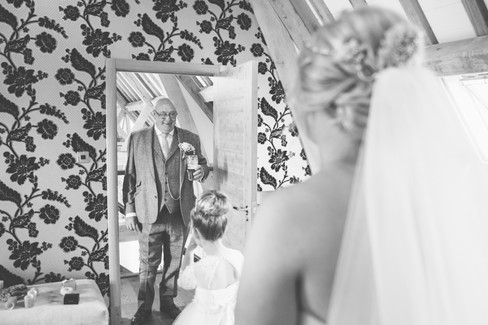 The first look is always a great moment to capture, once all the bride prep is done, the bride and bridesmaids are all dressed and ready to leave bridal prep, its a good chance to bring in the person who'll be walking the bride down the isle (usually father of the bride) and give them a first look of the bride.